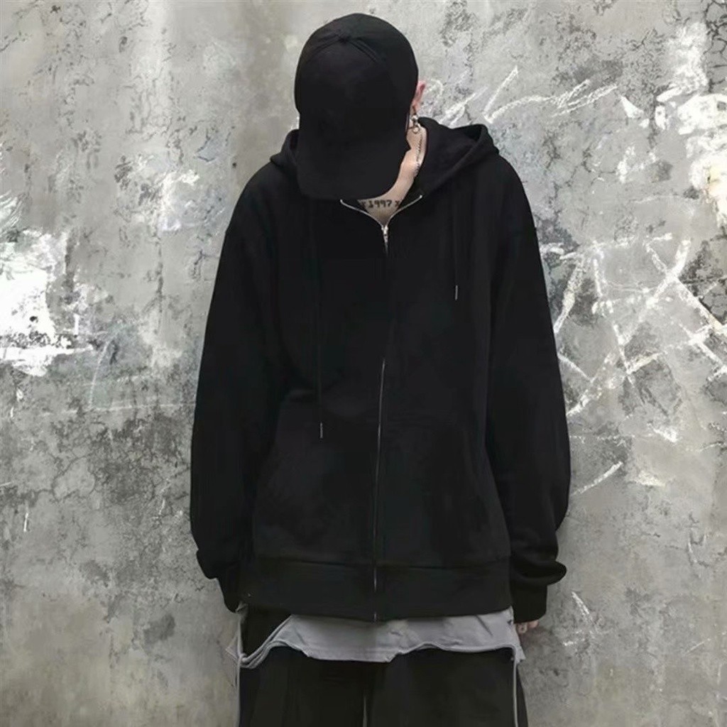 M~3XL Korean Men's Oversized Long Sleeve Sweater Fashion Solid Color Loose Zip Jacket Hoodie
