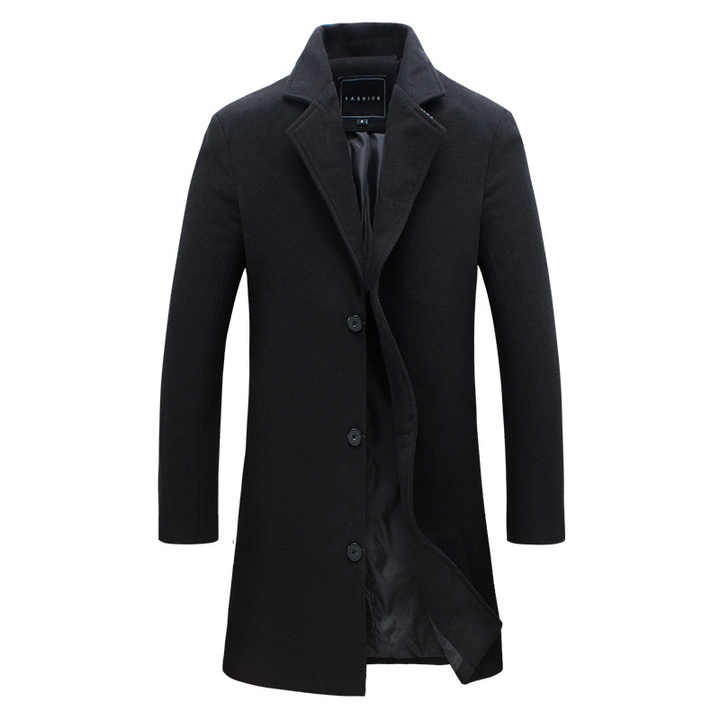 Mens New Fashion Design Long Coat Woolen Blended Slim Trench Coat