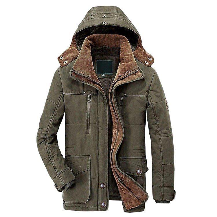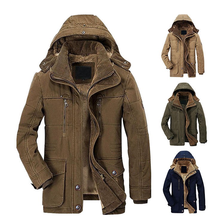 Winter Brown Thick Warm Cotton Windbreaker Jacket Hooded Parka Men's Jacket Coat